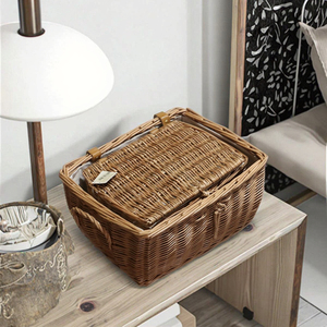 特注手作り天然ラタンウィッカーピクニックバスケットセットハンドル収納オーガナイザーバスケット付きOEM/ODM卸売